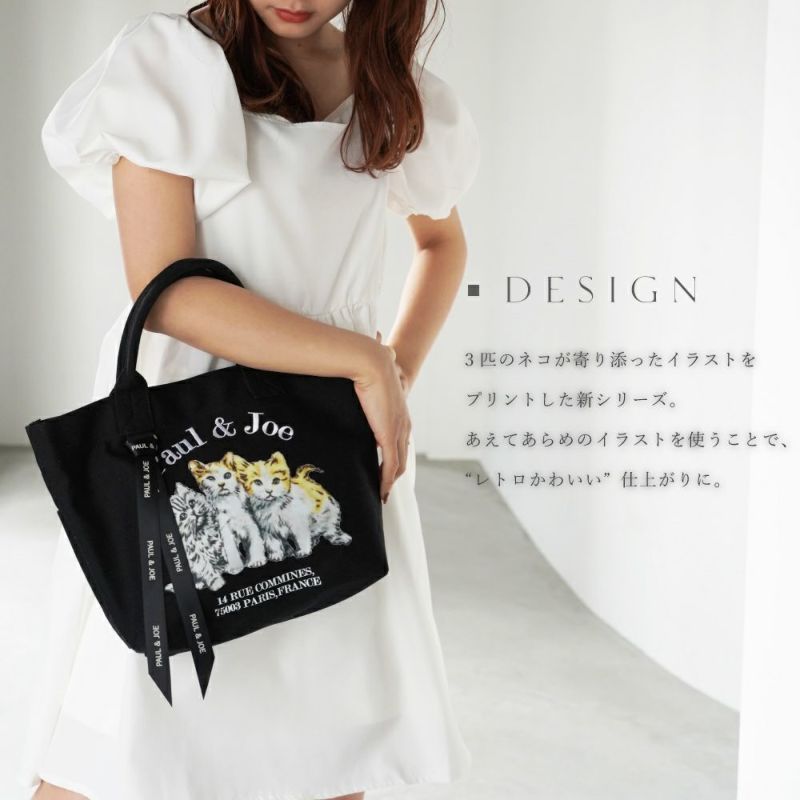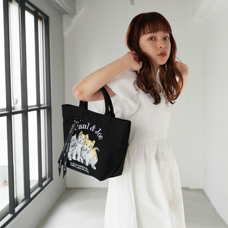 キャンバス素材にレトロな3匹の猫プリントがキュートなシリーズ。大きすぎず、軽量で使いやすいサイズ感のトートバッグです。ロゴ入りサテンテープ付き。