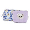 ジプシーが刺繍されたパイルポーチと総柄クリアポーチの2個セット。2サイズなので用途に応じて使い分けができて便利です。