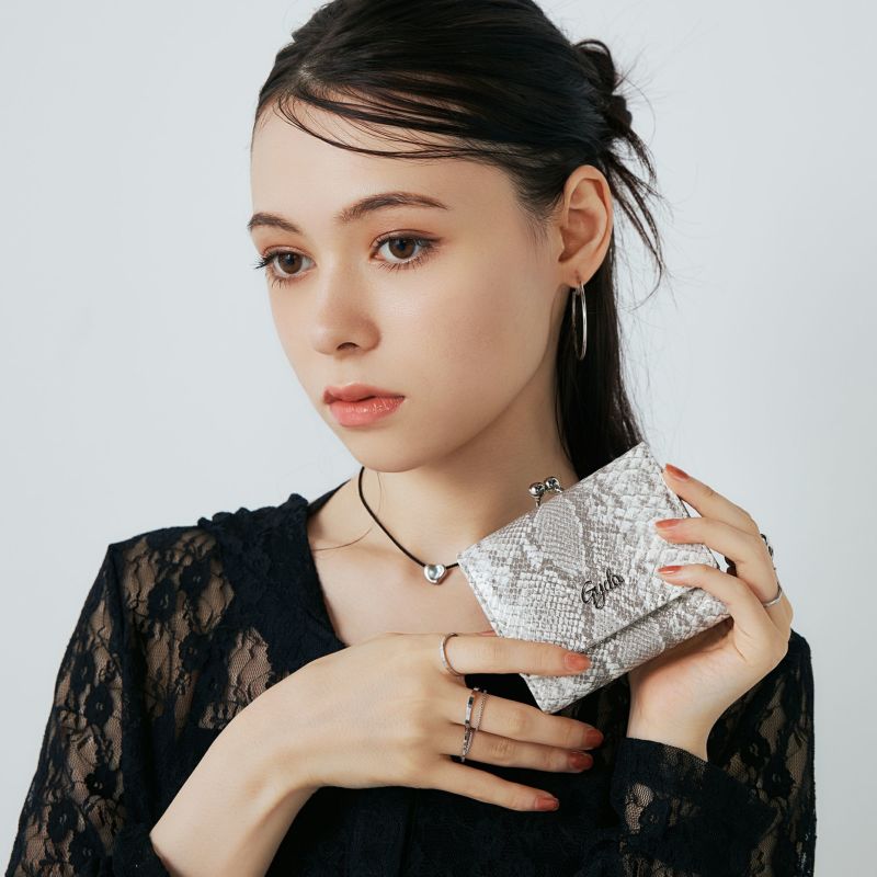 クールなデザインに対して上部にちょこんと出てくる口金が可愛いコンパクトなお財布。