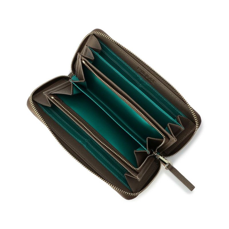 大きな猫の刺繍がポイントのかわいらしい小物のシリーズが新登場。バイカラーの裏地で中身が見やすいデザイン。長財布なのでもちろんカード収納も豊富。傷が付きにくいシボ合皮を使用したシリーズ