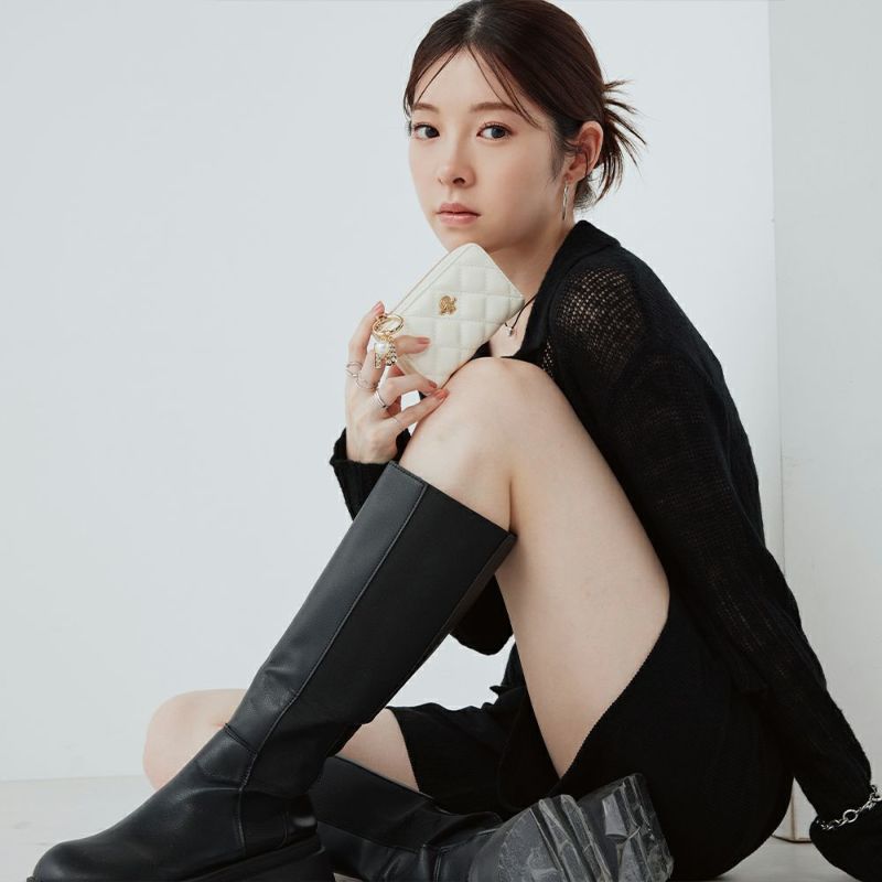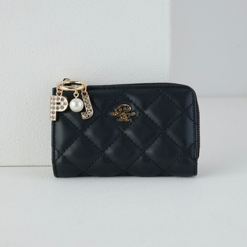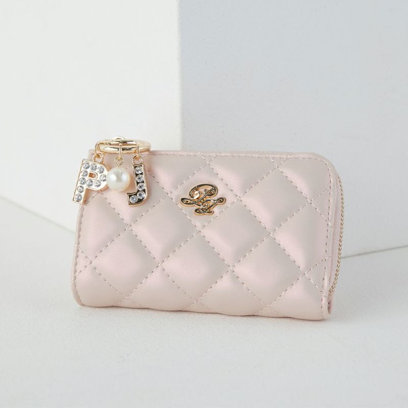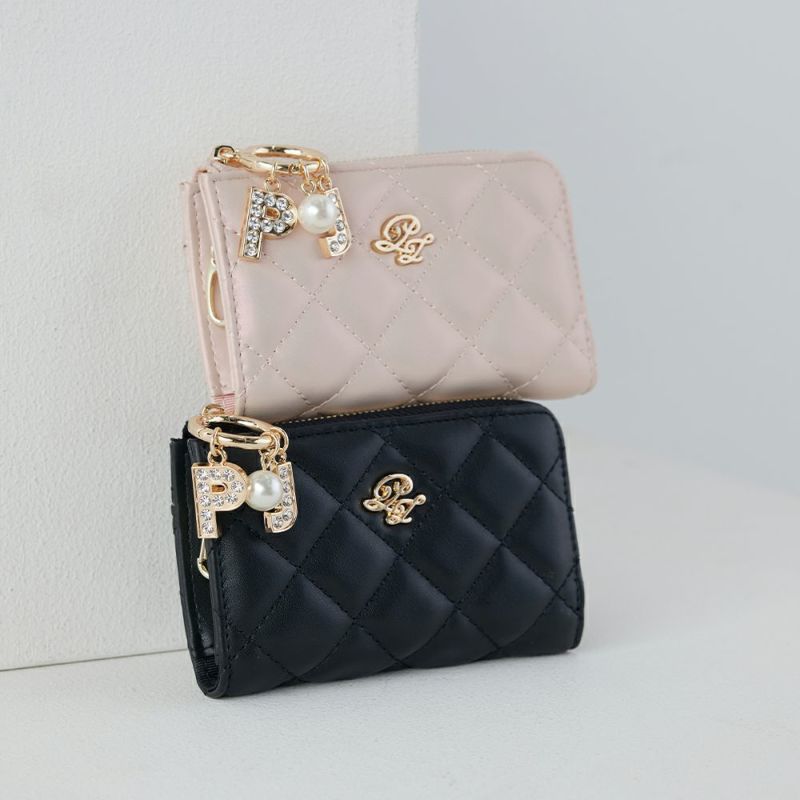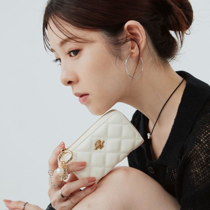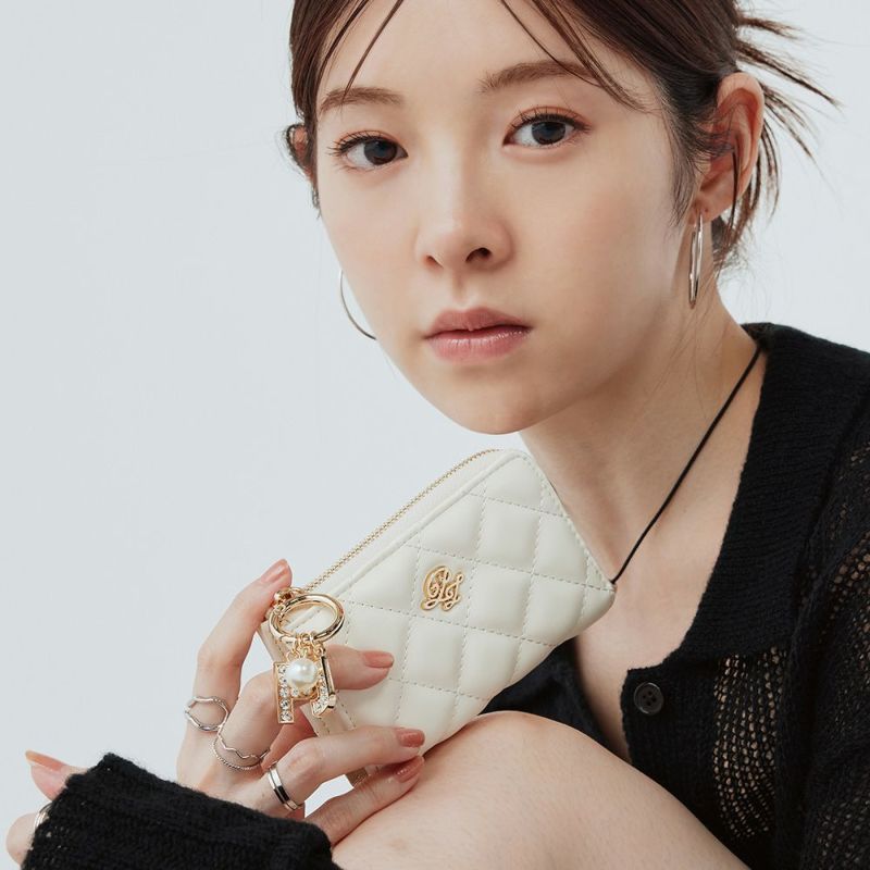 全面に施したキルティングにラインストーンチャームが付いた上品でいて高級感溢れるデザイン