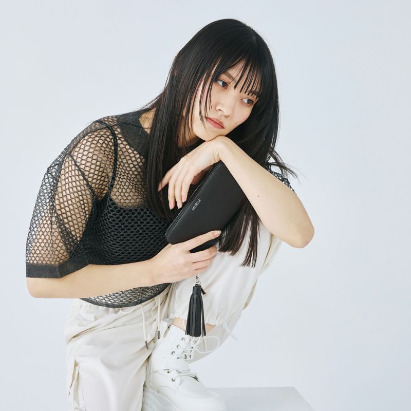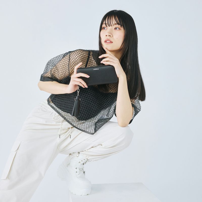 本体と同素材を使用したタッセルが付いた上品なデザイン。