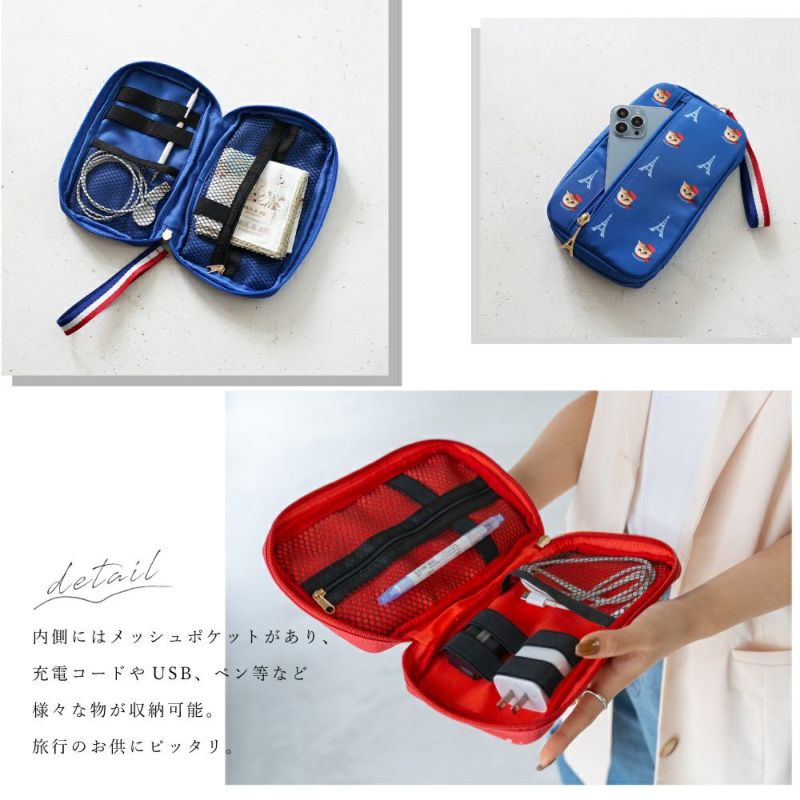 パリをイメージしたおしゃれなヌネットとエッフェル塔のガジェットケースが登場。薄型でかさばらず、充電器やコードをスッキリと収納できます。エッフェル塔のファスナー引き手がポイント。トリコロールカラーのストラップがポイント。