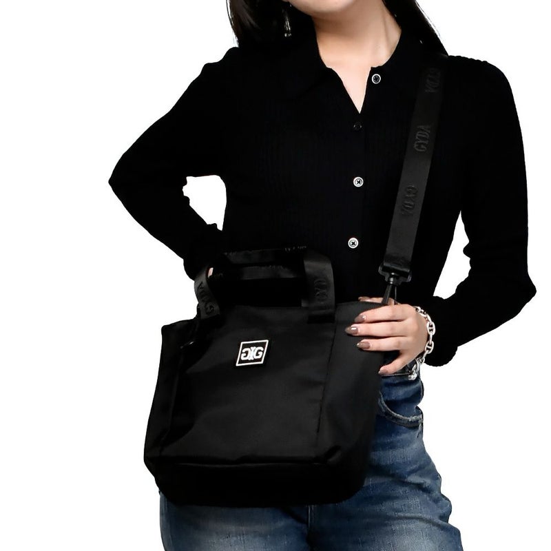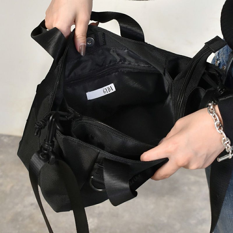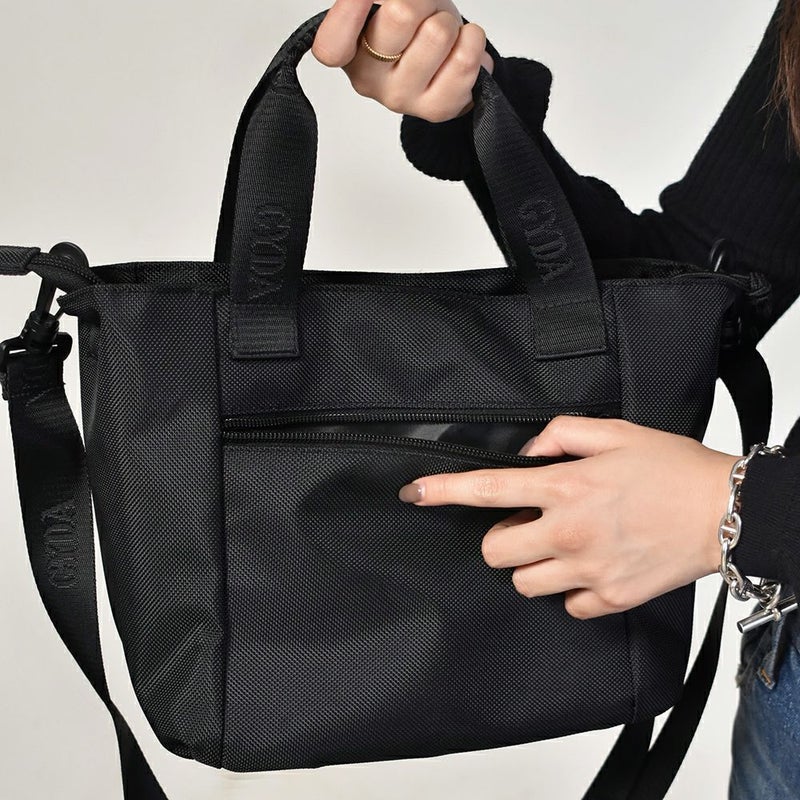 ロゴモチーフのラバーワッペンがインパクトのあるミニトートです。多ポケットで機能性も◎。毎日使いたくなるサイズ感です。ハンドルに付いているDカンにはキーホルダーなどが付けられます。ハンドルとショルダーのGYDAのロゴ入りテープがポイント。