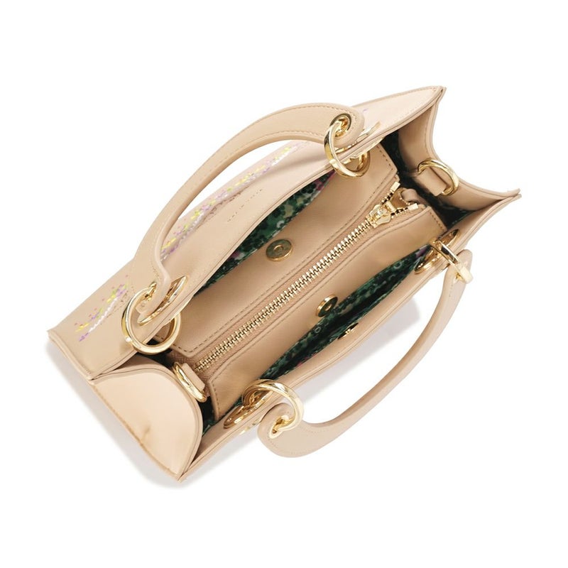 コンパクトなサイズ感×ゴールド金具で高見えのハンドバッグ。付属のショルダーストラップにはチェーンを使用し、カジュアルなショルダーバッグも高級感溢れる仕上がりに。2WAYでお使いいただけます。