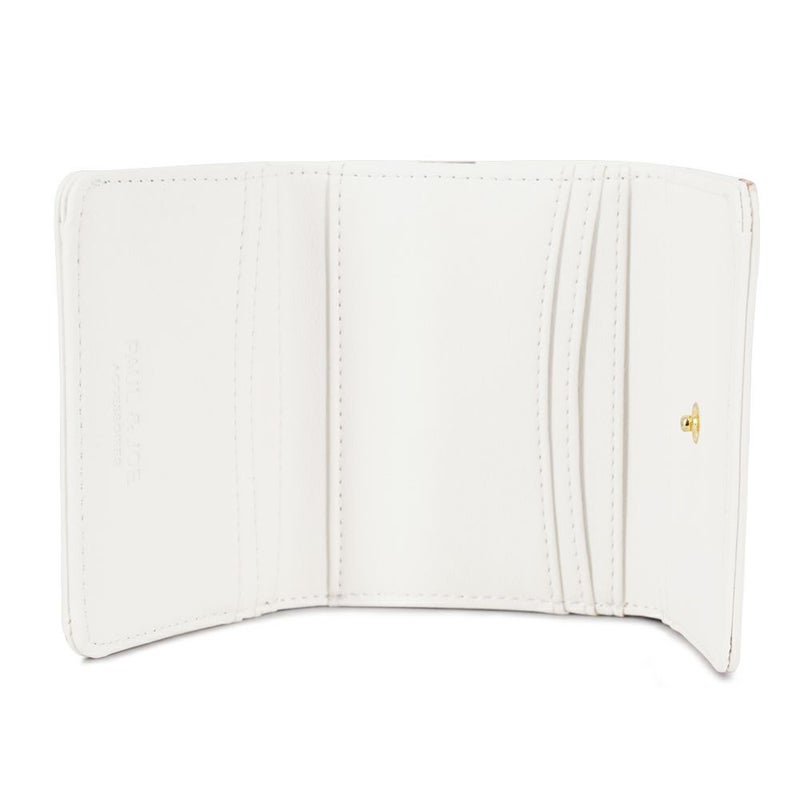 ヌネット総柄のカジュアルさにPAUL&JOEのロゴメタルを付ける事でカジュアルな中に高級感を持たせた仕上がりに。表面の総柄とは対照的に裏地には無地を採用。ソリッドカラーにヌネットの総柄を合わせる事で総柄ながらもお持ちいただきやすいデザインに仕上がりました。