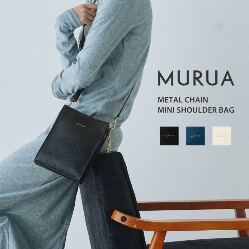 MURUA メタルチェーンシリーズからミニショルダーバッグが新登場!シンプルなロゴがおしゃれなデザイン。ファスナーの持ち手部分には取り外し可能なゴールドのメタルチャーム付き。コンパクトなサイズ感で綺麗めなショルダーバッグ。普段使いはもちろん旅行などにもピッタリです。