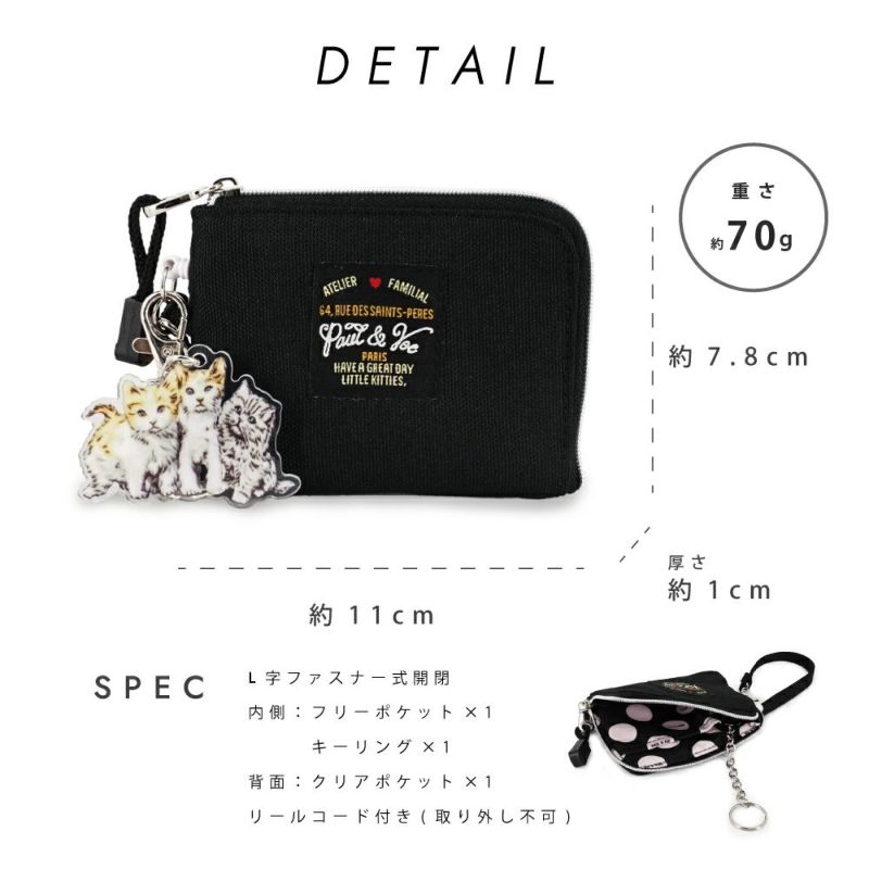 PAUL & JOE ACCESSOIRESで大人気のワッペンシリーズから新商品が登場!オリジナルのロゴワッペンがキュートなデザイン。取り外し可能なスリーキャッツのアクリルキーホルダー付き。キーチェーンがついているので、コインだけでなく、鍵も収納可能。背面にはクリアのカードポケットがあり、ICカードなどを収納することが可能。リールコード付きで普段お使いのバッグにつけて使用可能です。