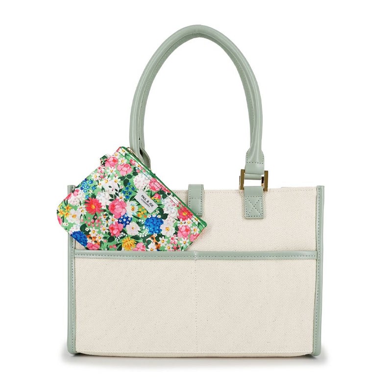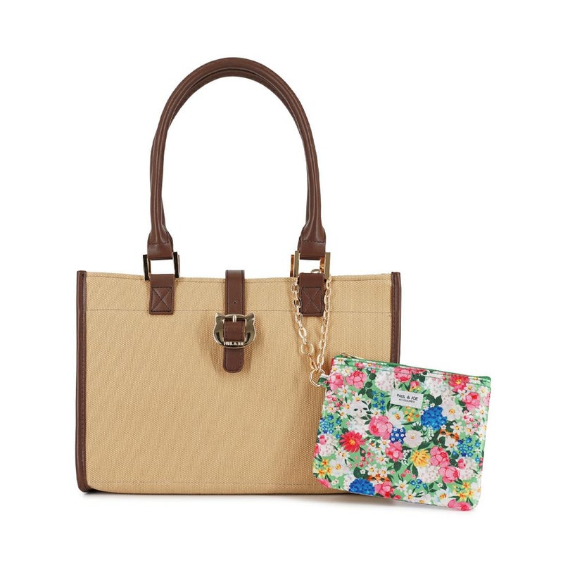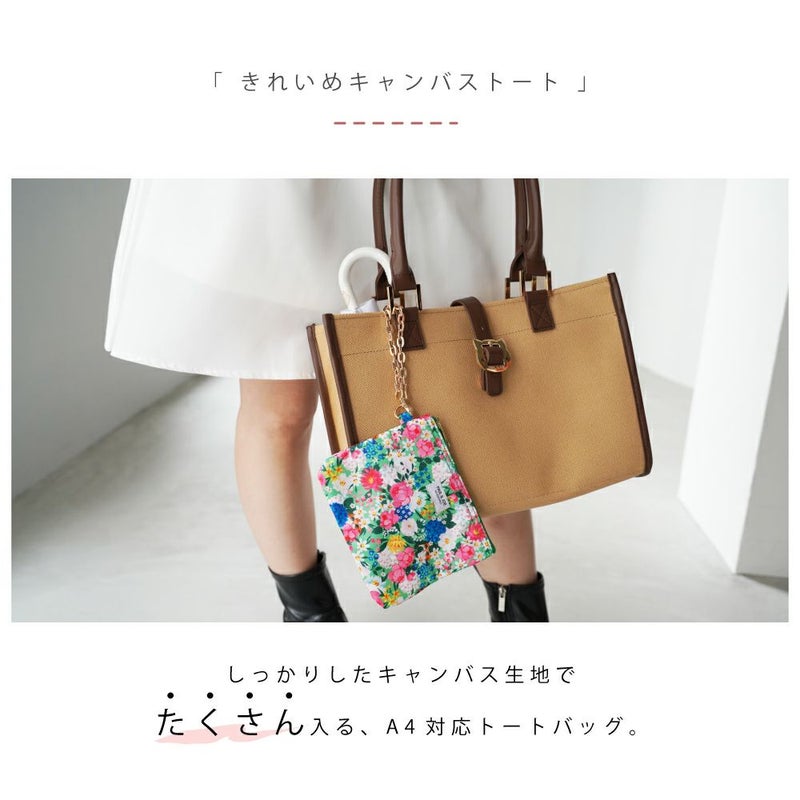 猫モチーフのメタルにキャンバス×PUレザーのコンビが大人っぽいトートバッグの登場です。通勤・通学にもおすすめ。花柄にジプシーとヌネットが隠れたキュートなフラットポーチ付き。