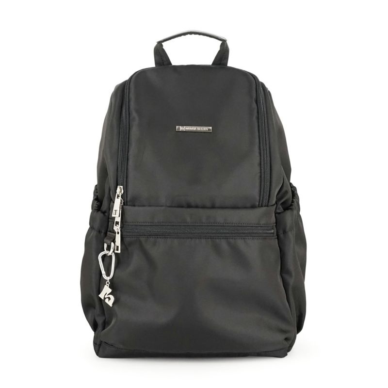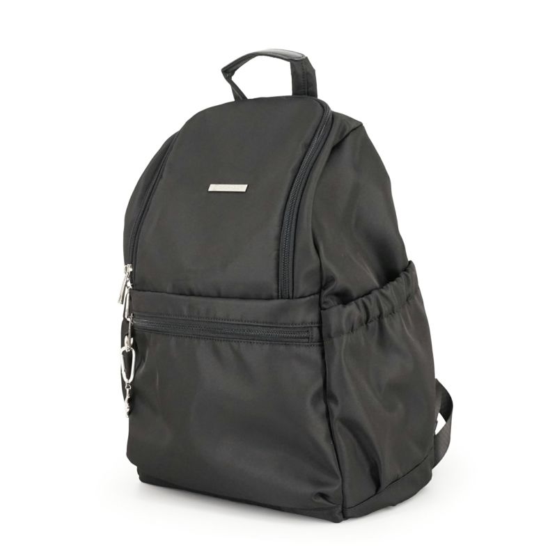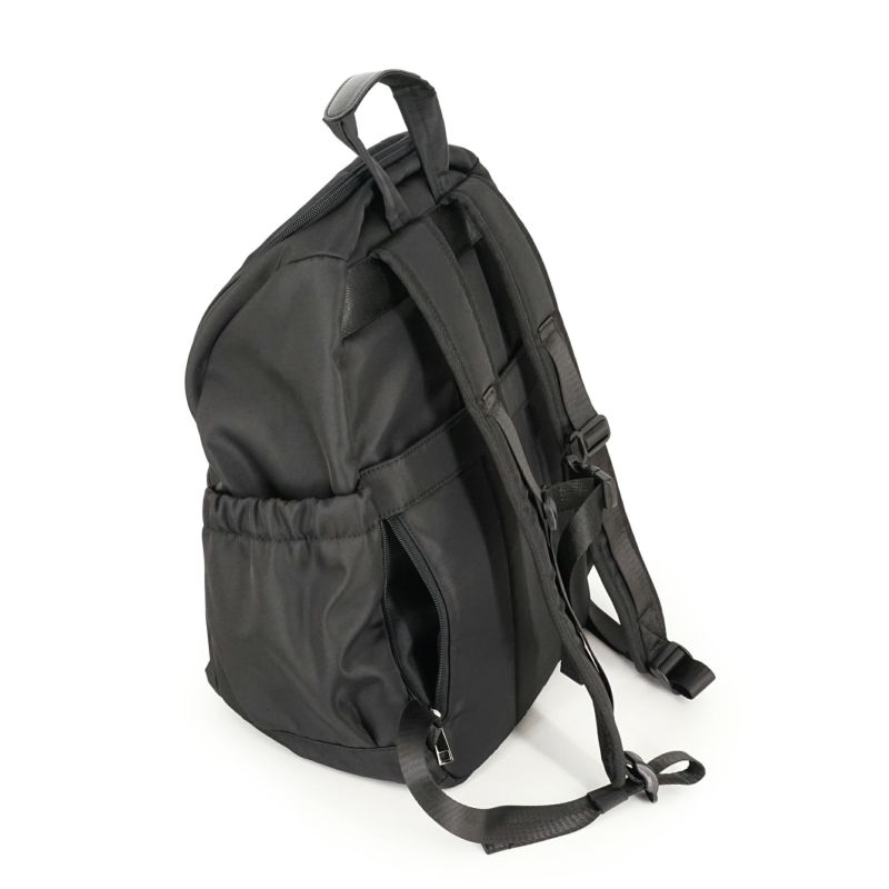 両サイドにはゴム入りのポケットを備え、ペットボトルや折りたたみ傘などを収納しておくのに便利。