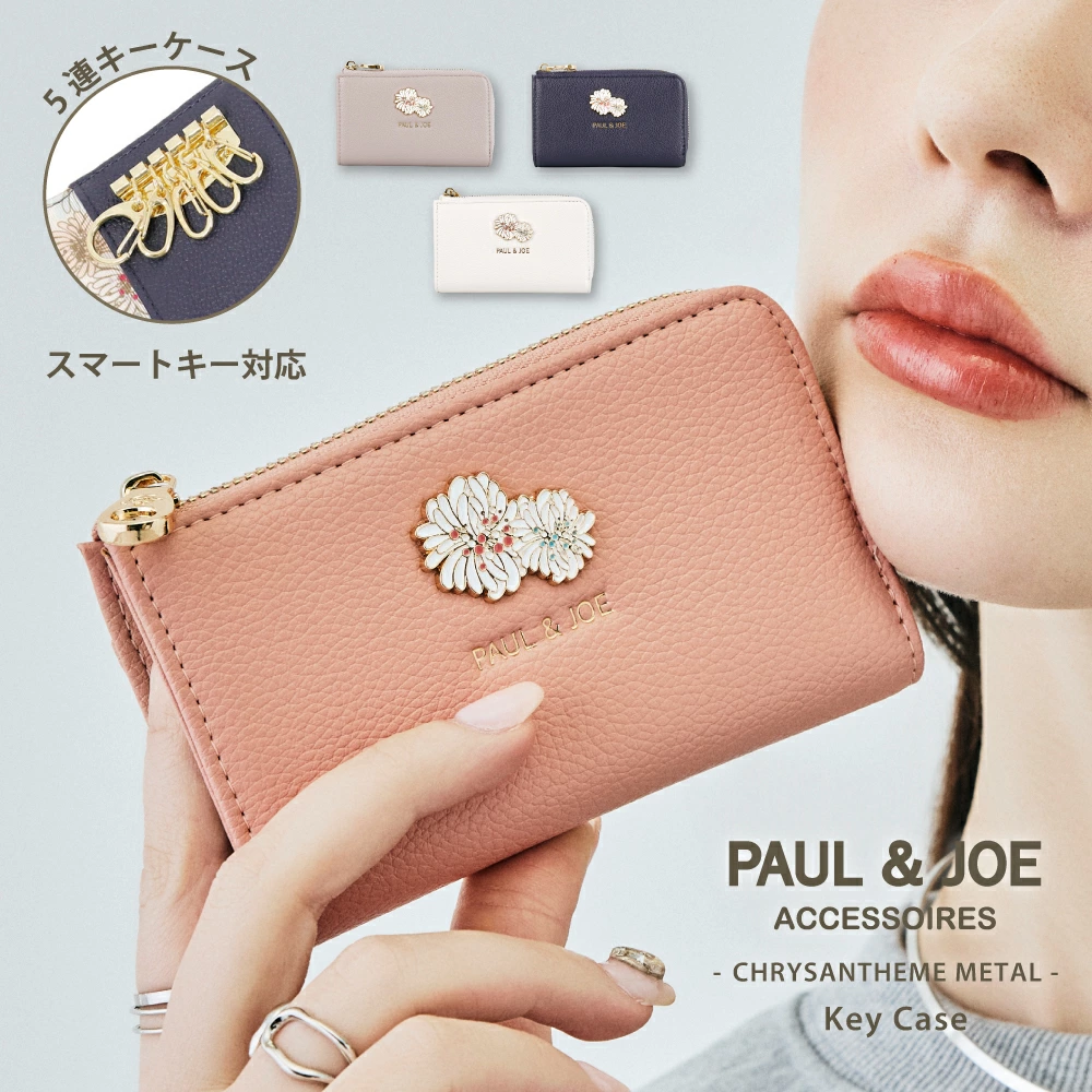 これまでの『クリザンテーム』のデザインから一新したシリーズ。シボ合皮にクリザンテームのメタルを合わせた上品なデザインのシリーズが誕生しました。裏地にはクリザンテームの総柄を使用し、内側からもPAUL&JOEらしさを感じられる仕上がりに