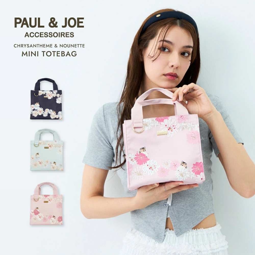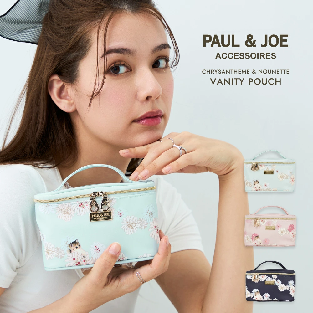 | PAUL&JOEの代名詞ともいえる「ヌネット」と「クリザンテーム」を一つのデザインに。 クリザンテームからチラッと顔を出すヌネットが可愛いオリジナルのデザインを使用した最新作。 本体には耐久性に優れたポリエステルを使用し、お手入れも楽々。 可愛さと上品さを兼ね備えたデザインに合わせたミント・ネイビー・ピンクの3色展開。 |