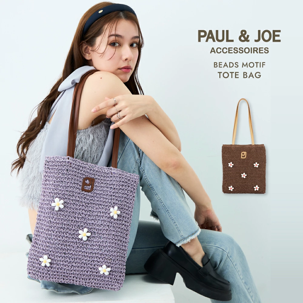 刺繍で施されたPAUL&JOEのロゴが平面的なデザインに動きをプラスしています。