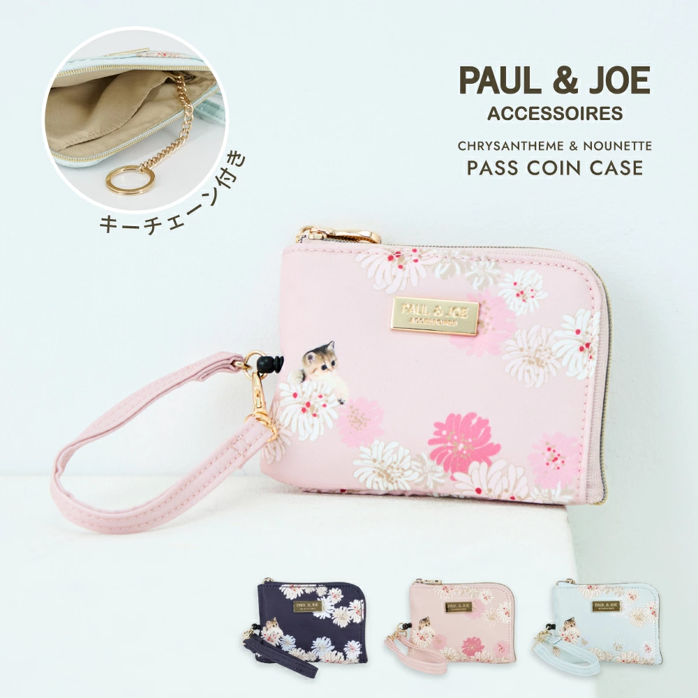 これまでの『クリザンテーム』のデザインから一新したシリーズ。シボ合皮にクリザンテームのメタルを合わせた上品なデザインのシリーズが誕生しました。裏地にはクリザンテームの総柄を使用し、内側からもPAUL&JOEらしさを感じられる仕上がりに
